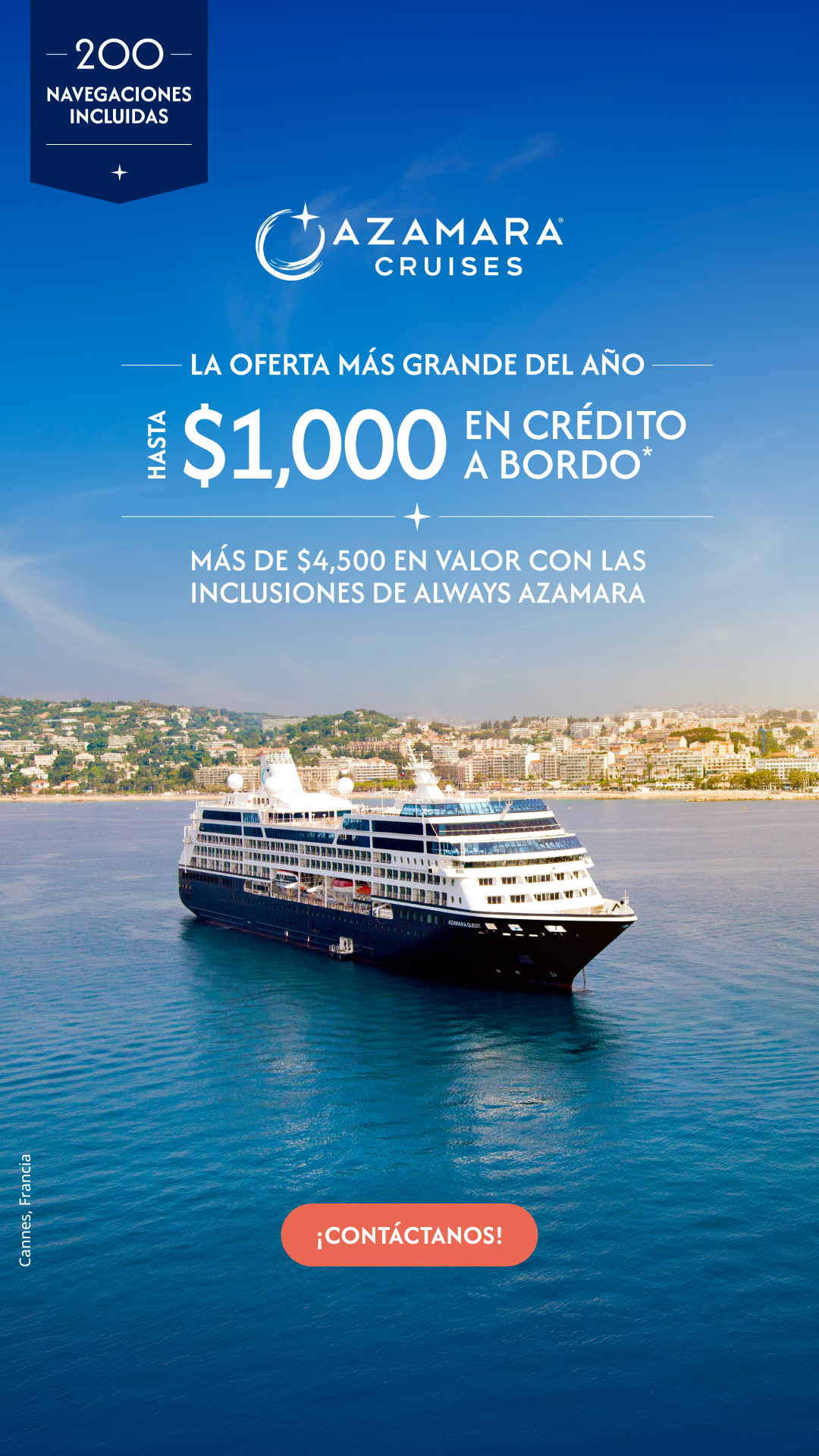 La "Inmersión en Destinos" de Azamara Cruises es su filosofía central, ofreciendo estancias más largas en puerto (incluyendo noches), lo que permite a los huéspedes explorar a fondo la cultura local a través de eventos culturales como los AzAmazing Evenings, menús rotativos en restaurantes con sabores locales, y acceso a puertos más pequeños que los barcos grandes no alcanzan, todo con una experiencia de lujo y servicio personalizado para una conexión más profunda con cada lugar.